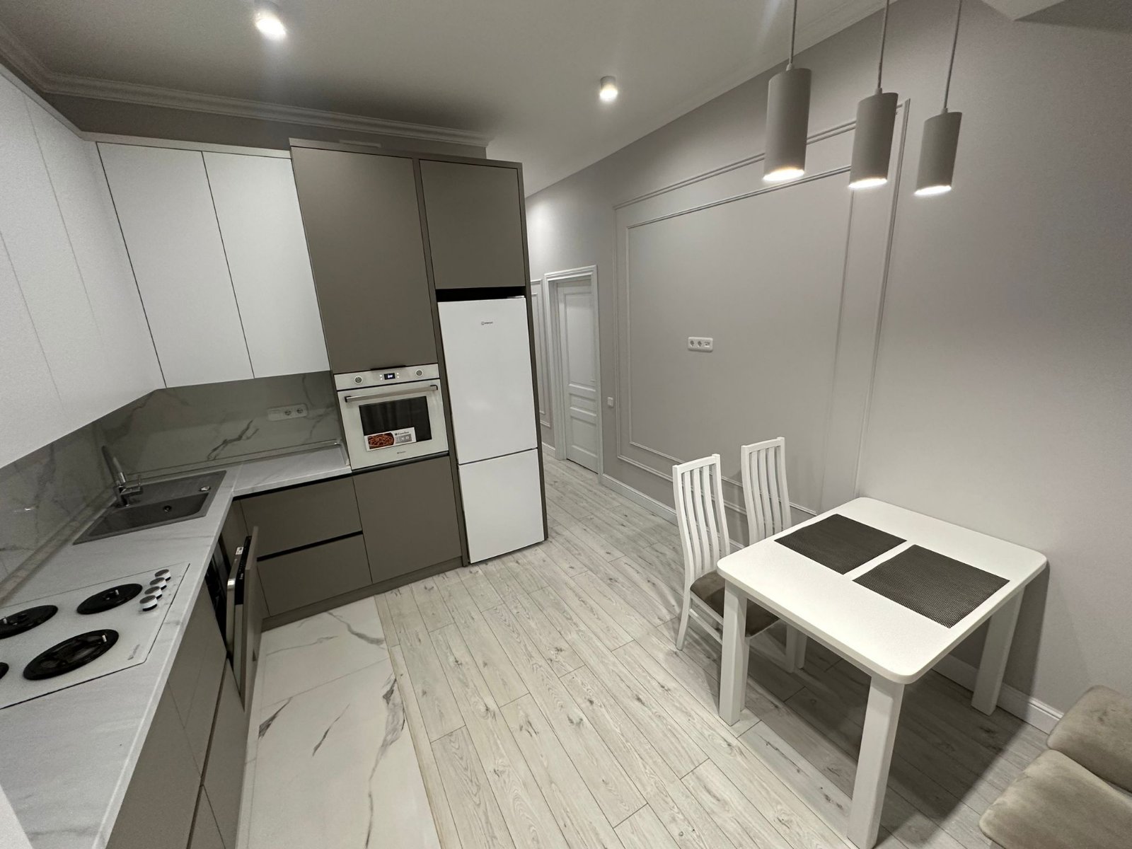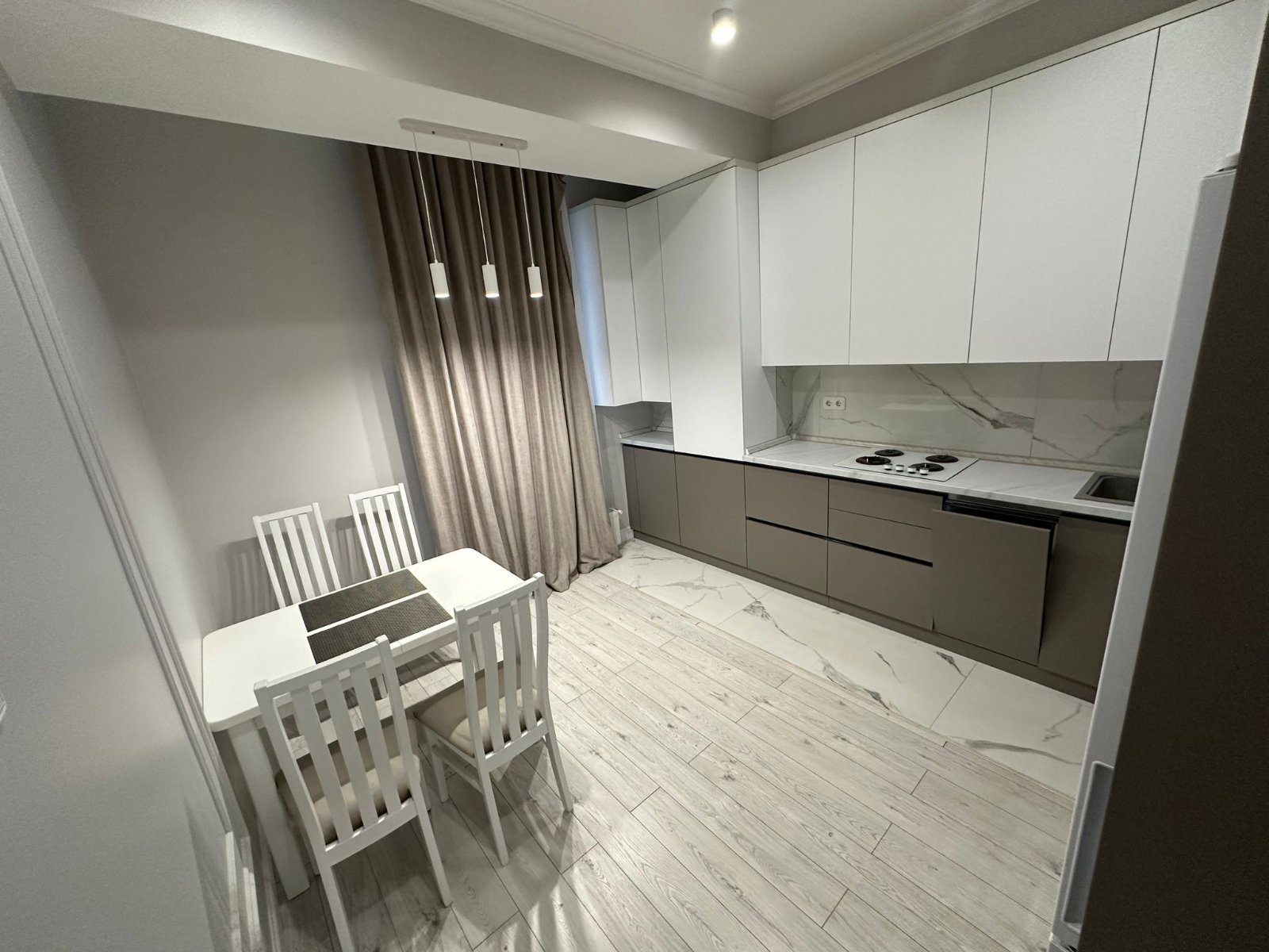 - mobilă și tehnică funcționabilă (masină de spălat vase, frigider, aragaz, rolă, hotă)