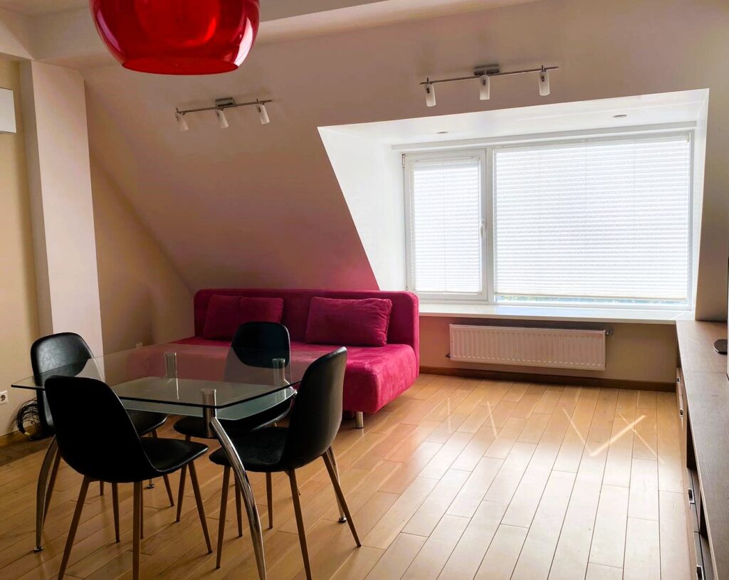 Dispune de: 1 dormitor separat, living open space , bucătărie, bloc sanitar, antreu.