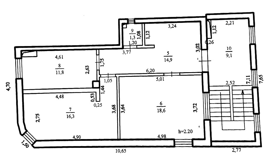 Compartimentat: 3 birouri, bloc sanitar, antreu.